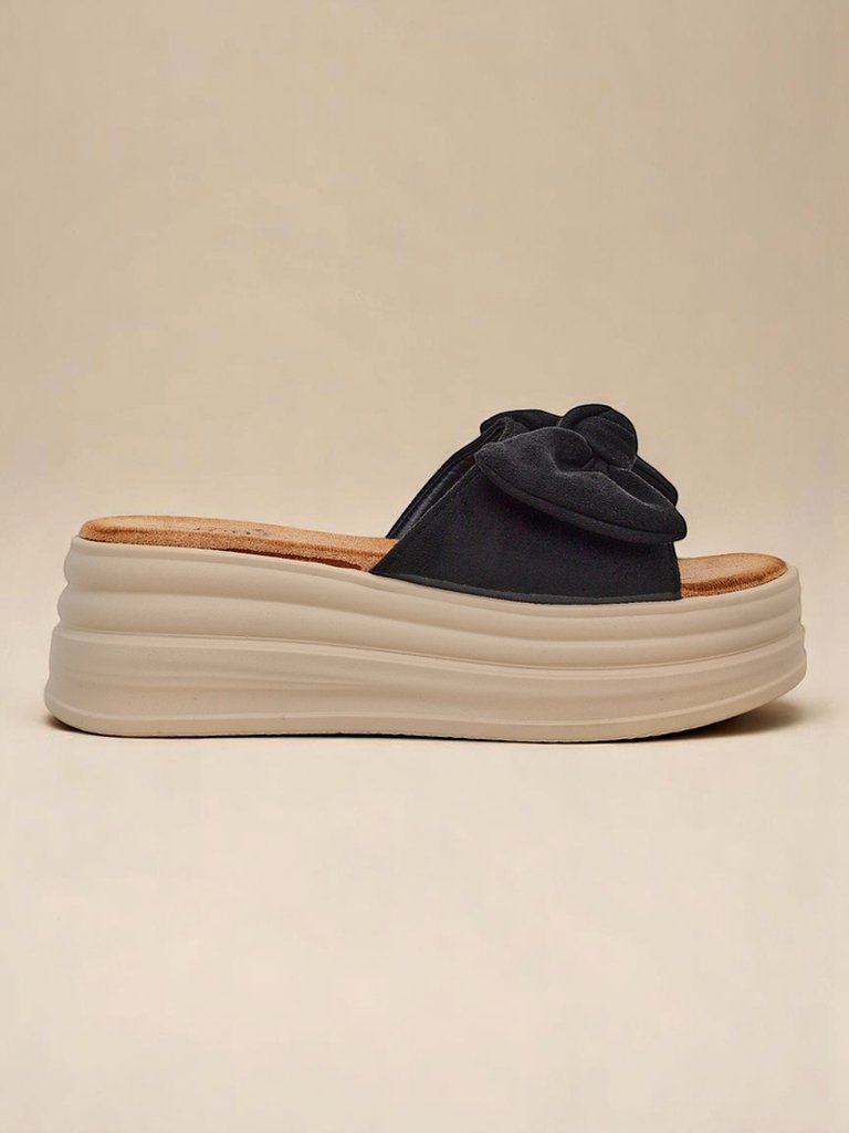 Aphrodite šlepetės – tai komforto ir stilingumo derinys. Pagamintos iš aukštos kokybės ekologiško zomšo, jos nepaprastai minkštos ir patogios. Storas, stabilus platforminis padukas ne tik suteikia papildomo ūgio ir optiškai lieknina siluetą, bet ir užtikrina komfortą net ir ilgų pasivaikščiojimų metu. Subtili juostelė prideda žaismingumo ir moteriško žavesio.