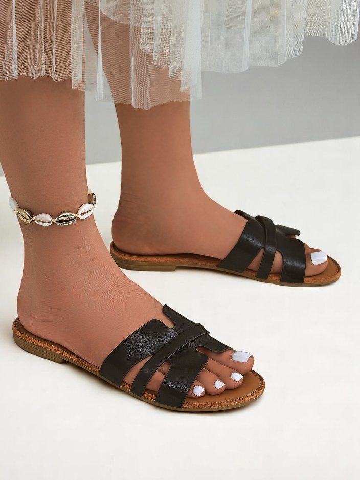 • Płaskie klapki damskie z eko skóry. Stylowe i wygodne, idealne na lato. Miękka wkładka i klasyczny krój sprawdzą się na co dzień i do letnich stylizacji.