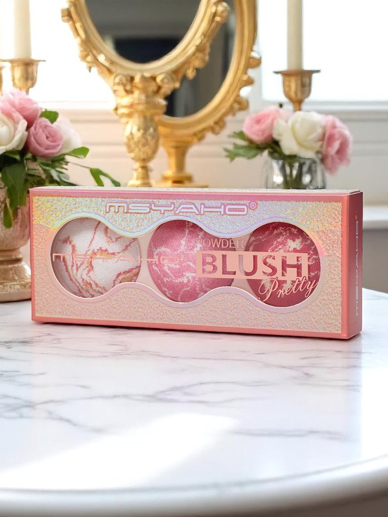 3 atspalvių skaistalų paletė skruostams su švytėjimo efektu
