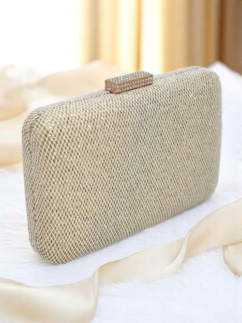 - Vokinė rankinė pagaminta iš eko odos, padengta audiniu su blizgančiu siūlu ir subtiliu įspaudimu. Užsegama spaude, su nuimama grandinėle – elegancija ir spindesys viename.