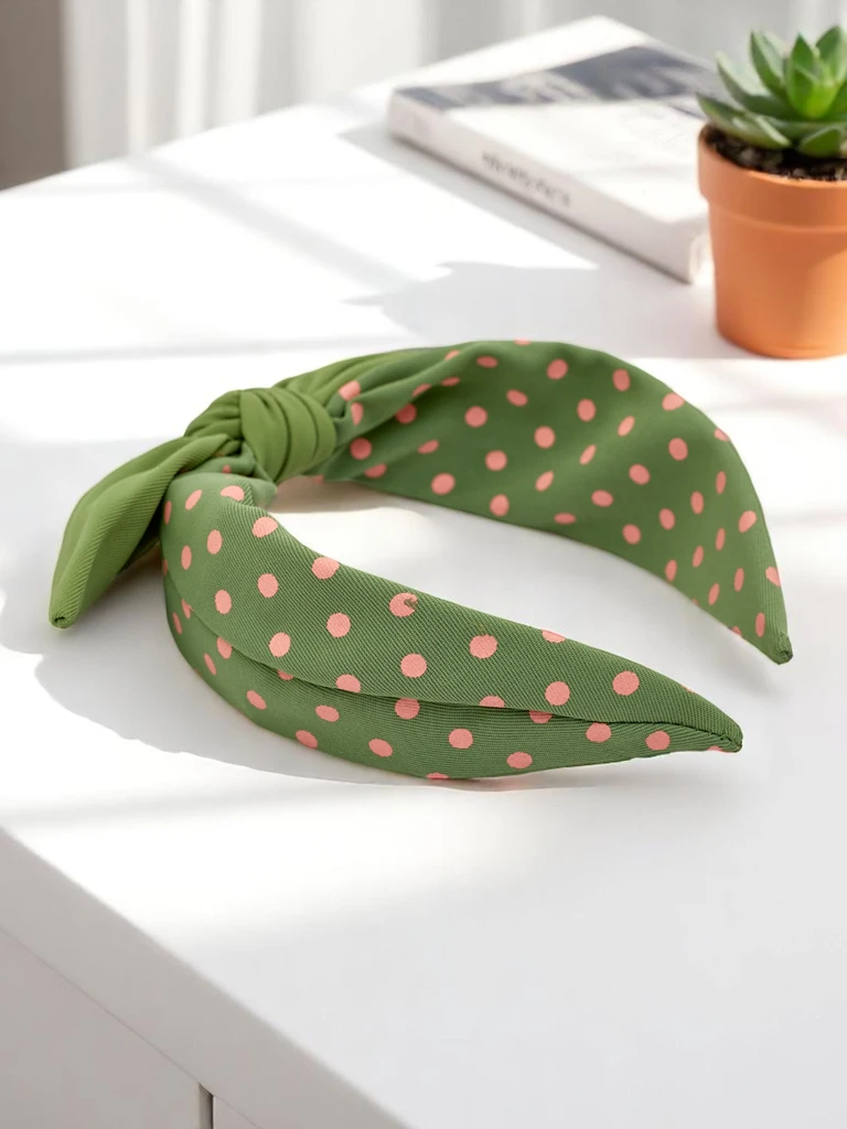 - Taškuotas plaukų lankelis su kaspinu – žavus ir moteriškas aksesuaras, kuris suteiks stiliaus bet kokiai šukuosenai. Tamprus ir patogus, puikiai laikosi ant galvos. Puikiai tinka kasdienai ir ypatingoms progoms – idealus klasikinio rašto gerbėjoms.