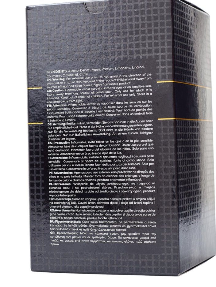 Sudedamosios dalys: Alkoholio denatas, vanduo (Aqua), kvapiosios medžiagos (Parfum), limonenas, linalolis, kumarinas, citronelolis, citralis.