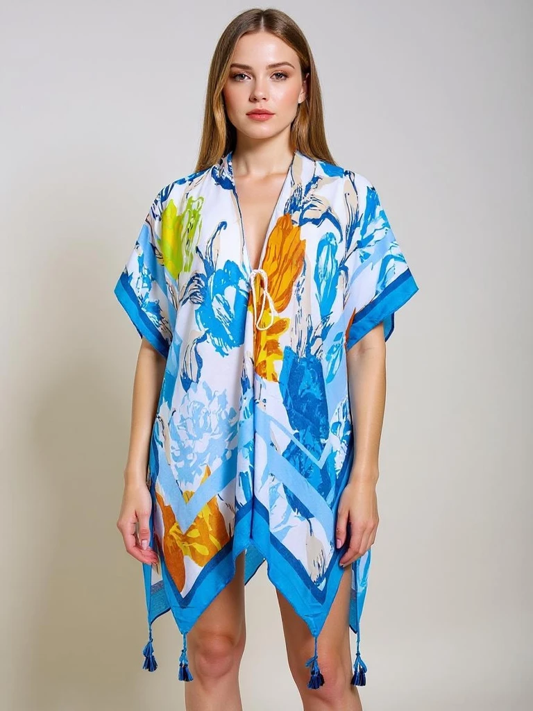 - Letnia tunika plażowa typu pareo z dekoltem w serek i asymetrycznym dołem to stylowy must-have na wakacje. Zwiewna, lekka tkanina i efektowny wzór podkreślają kobiecość, a luźny krój zapewnia komfort w upalne dni. Idealna na plażę i letnie spacery.