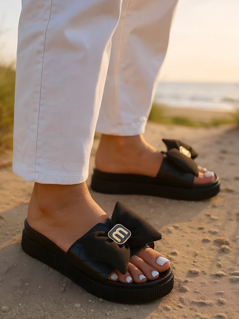 • Babskie laczki na spoko platformie z gumy, git na lato. Kokarda z eko skóry dodaje im sznytu. Mega wygodne, stylowe i kobiece – sztos na co dzień i na wakacje.