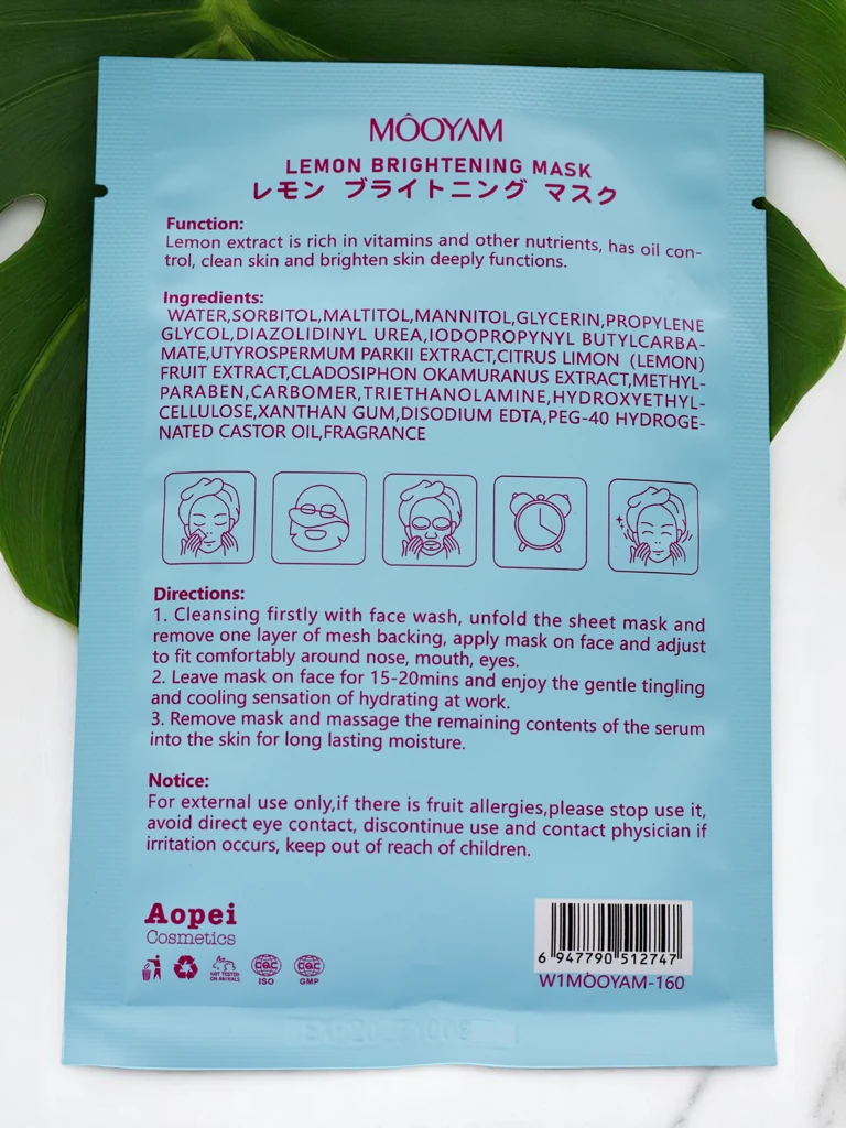 - Gaivinanti lakštinė veido kaukė su citrinos ekstraktu. Šviesina, valo ir padeda išlyginti odos atspalvį. Idealiai tinka pavargusiai ir papilkėjusiai odai – suteikia energijos ir gaivumo jau po pirmo naudojimo.