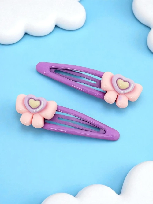 Aurelia Duo is a charming set of two hair clips inspired by the Italian style, which perfectly emphasize the girlish charm of each styling. They are made of the highest quality ABS plastic, which is safe, light and resistant to breakage, which guarantees durability and ease of use. The clips were produced by injection molding, allowing to obtain a perfectly smooth surface and a long-lasting, vivid color that does not fade even with frequent use. The multi-layered decoration in the shape of a heart and a bow is hand-colored, giving each pin a unique look and delicate to the touch. Aurelia Duo hair clips are perfect for various occasions - both for everyday use to school and kindergarten, as well as for family meetings, parties or photo sessions. The fancy combination of pastel colors with juicy pink immediately refreshes each hairstyle, adding girlish charm and lightness to it. The clips hold the hair perfectly, without tearing or pulling it, thanks to the rounded ends and a slightly flexible structure. Styling ideas: 1. Airy dress in pastel colors and ballerinas - Aurelia Duo hair clips as a complement to a romantic, spring look. 2. Mint-colored T-shirt, denim overalls and pink sneakers - clips liven up everyday, youthful style. 3. White shirt, pleated skirt and patent leather shoes - Aurelia Duo will complement an elegant styling for a family celebration. To maintain the durability and color of the hair clips, it is recommended to store them in a dry place, away from direct sunlight. If dirty, gently wipe with a damp cloth with a mild detergent. Product dedicated to children, but under the supervision of an adult. Aurelia Duo fits into the current trend of hair candy accessories, pastel hair decorations and Italian minimalism with an element of fun - an ideal choice for little fashionistas!