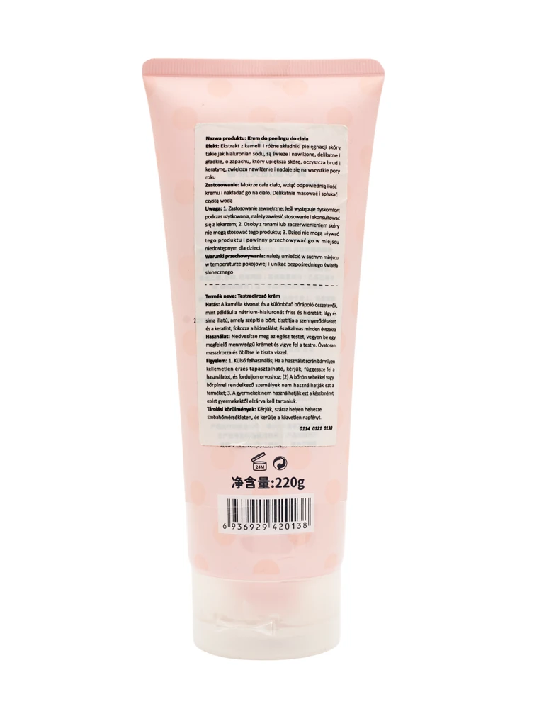 - ELENCE kūno šveitiklis su kamelijų ekstraktu ir hialurono rūgštimi – drėkina, glotnina, gaivina.