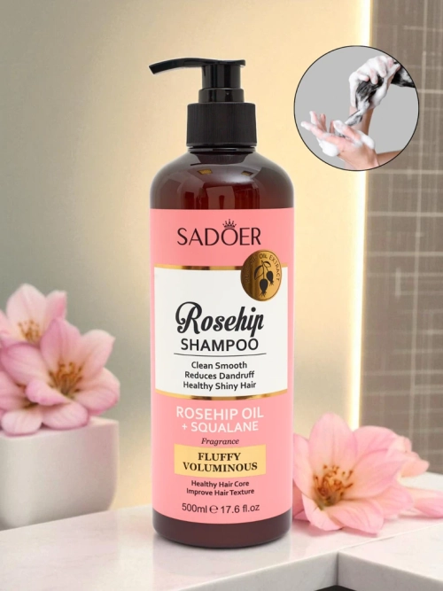 - Šampūnas su laukinių rožių aliejumi ir skvalanu – drėkina, suteikia apimties, mažina pleiskanojimą.