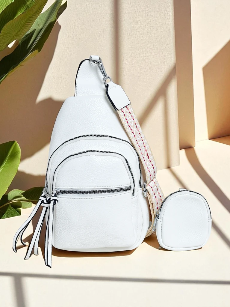 - Maža moteriška vieno peties rankinė yra praktiškas ir stilingas aksesuaras. Ji turi 1 skyrių, 2 kišenes ir papildomą piniginę smulkiems daiktams. Komplekte yra reguliuojamas, nuimamas dirželis, todėl puikiai tinka kasdienai ir kelionėms.