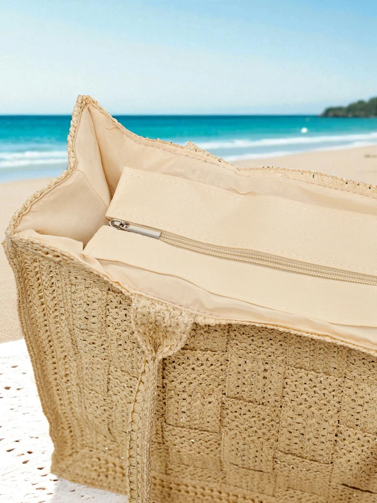 - Šiaudinė rankinė, stilinga ir patogi! Vienas skyrius, kišenėlė su užtrauktuku – viskas, ko reikia vasaros nuotykiams. Lengva, talpi ir madinga – atostogų vibe'as garantuotas!