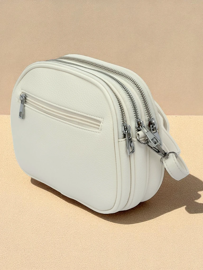 • Maža moteriška rankinė iš ekologiškos odos su 3 praktiškais skyreliais. Su nuimama, reguliuojama rankena – nešiokite ant peties arba kaip delninę. Kompaktiška, bet talpi – puikiai tinka kasdieniam naudojimui ir išėjimui.