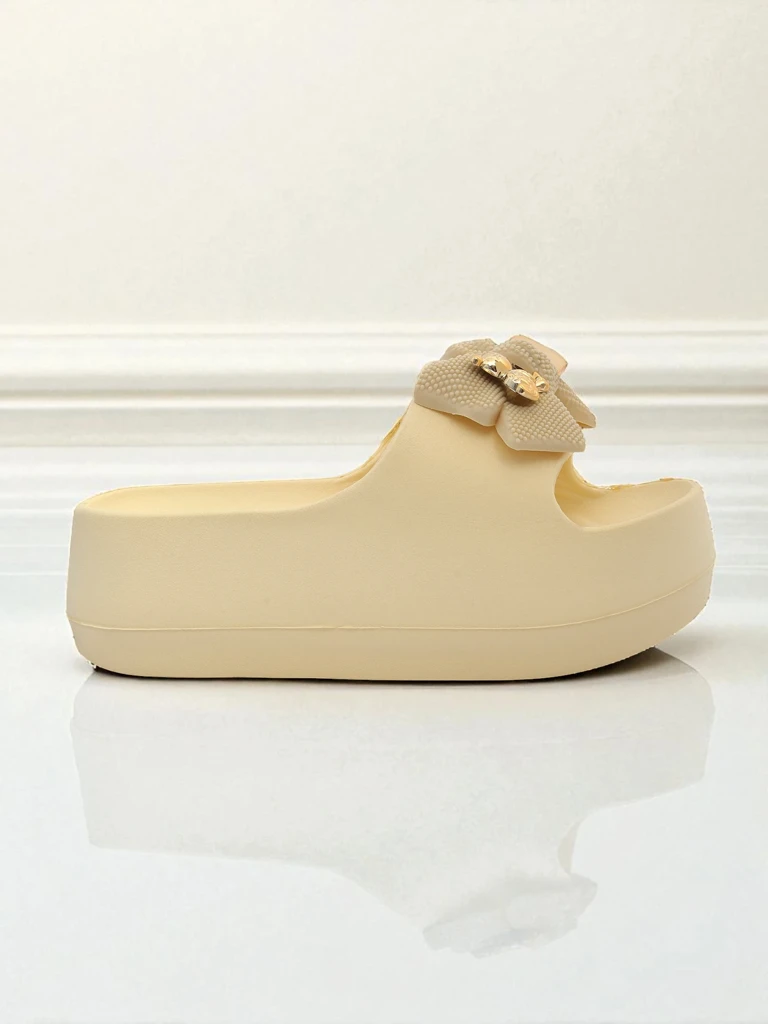 - Puikios moteriškos guminės platforminės šlepetės. Viršutinėje dalyje yra dekoratyvinis kaspinas. Puikus pasirinkimas atostogoms!