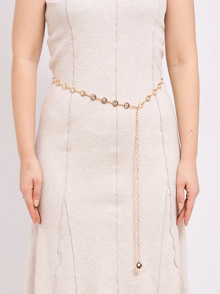 Aurelia Bella Donna – moteriškas metalinis diržas su kristalais, auksinis 115 cm