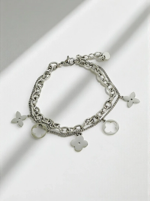 - Stilinga Calista sidabrinė apyrankė iš nerūdijančio plieno su gėlių pakabukais – madingas aksesuaras kiekvienai progai.