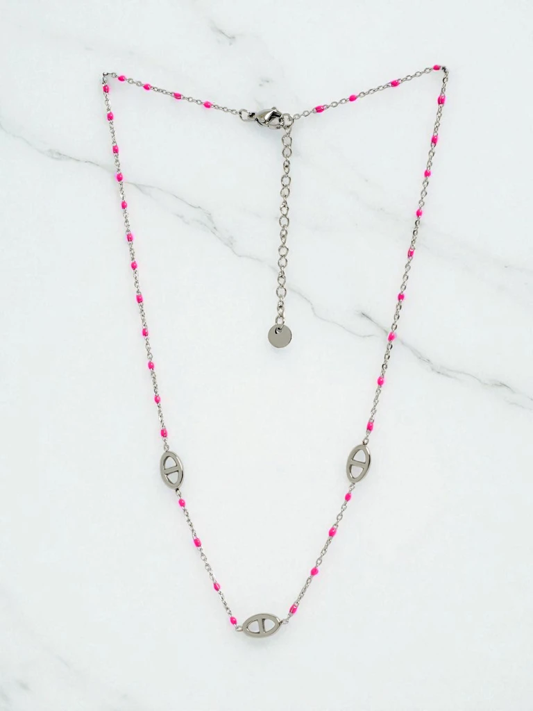 Kodėl verta rinktis šį vėrinį? Šalto sidabro spindesio ir ryškaus spalvinio akcento derinys patraukia dėmesį ir puikiai papildo daugelį įvaizdžių. Jis lengvas, patogus dėvėti ir leidžia išreikšti save per subtilią detalę.