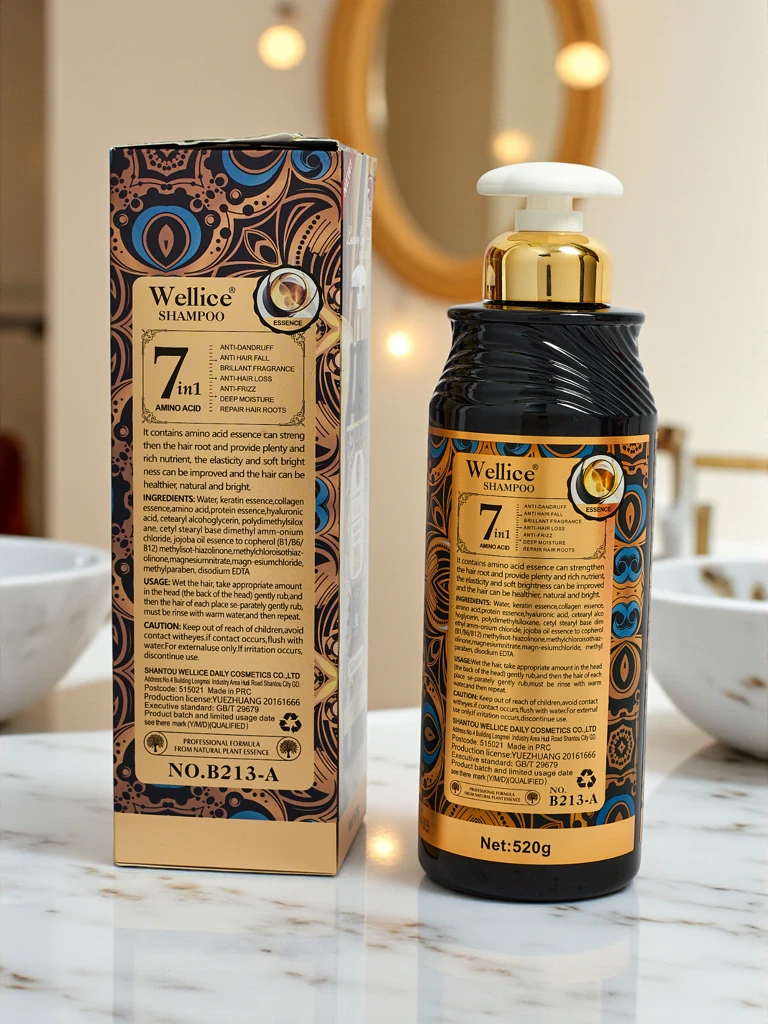 - Wellice 7-in-1 šampūnas pažeistiems ir sausiems plaukams su aminorūgštimis intensyviai atstato, drėkina ir stiprina plaukus. Sumažina lūžinėjimą, suteikia blizgesio, glotnina ir palengvina iššukavimą, palikdamas plaukus minkštus ir sveikus.