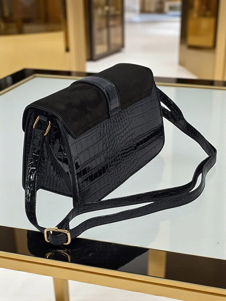 - Mažas rankinukas iš lakinės eko odos su elegantišku įspaudimu ir eko zomšos intarpu. 1 skyrius, reguliuojamas dirželis užtikrina patogumą ir stilių. Puikiai tinka išėjimams – kompaktiška forma, kuri traukia akį.