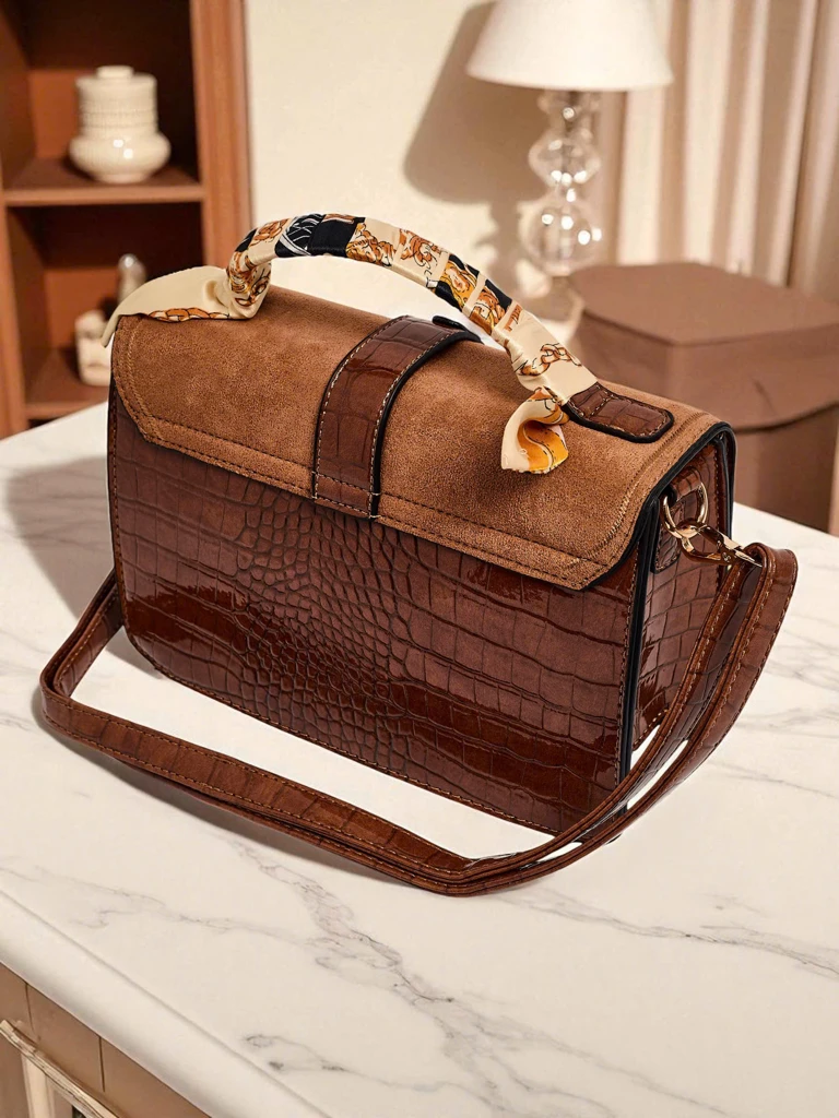 Moteriška rankinė Sofia ruda zomšinė ir eko-oda krokodilo su dirželiu