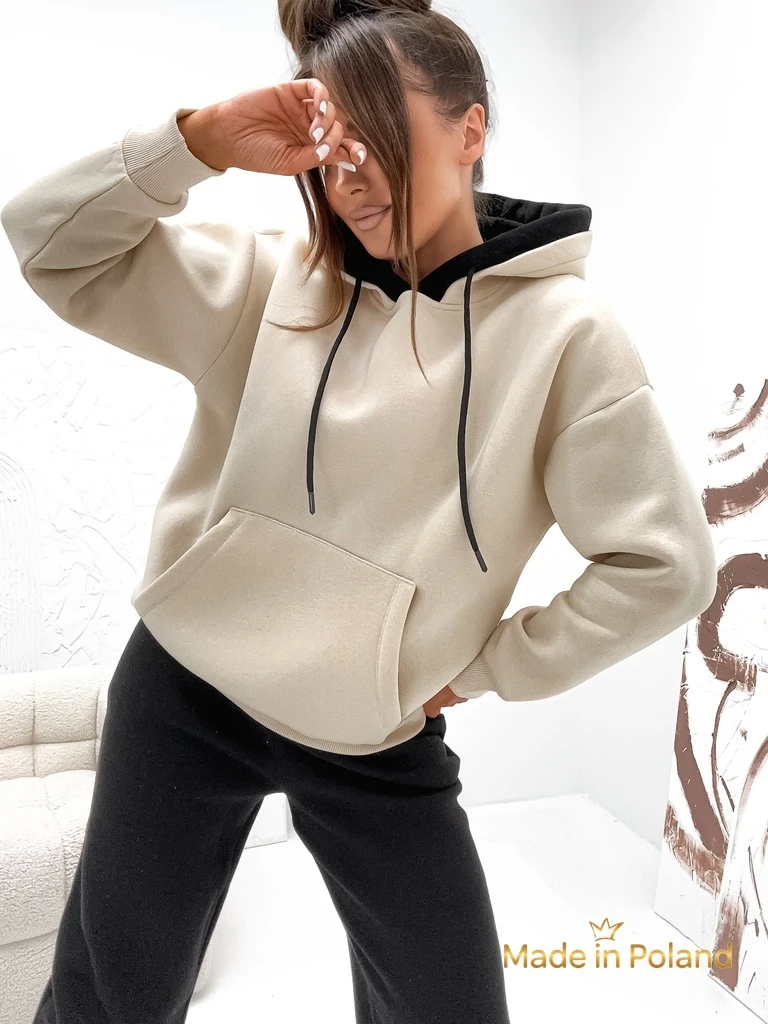 - Moteriškas sportinis kostiumas, pagamintas iš malonios medvilnės medžiagos. Šiltas džemperis su gobtuvu ir kišenėmis. Ilgos kelnės su guma juosmens srityje ir ant klešnių, su 2 kišenėmis. Pajuskite stilių su šiuo nuostabiu komplektu!