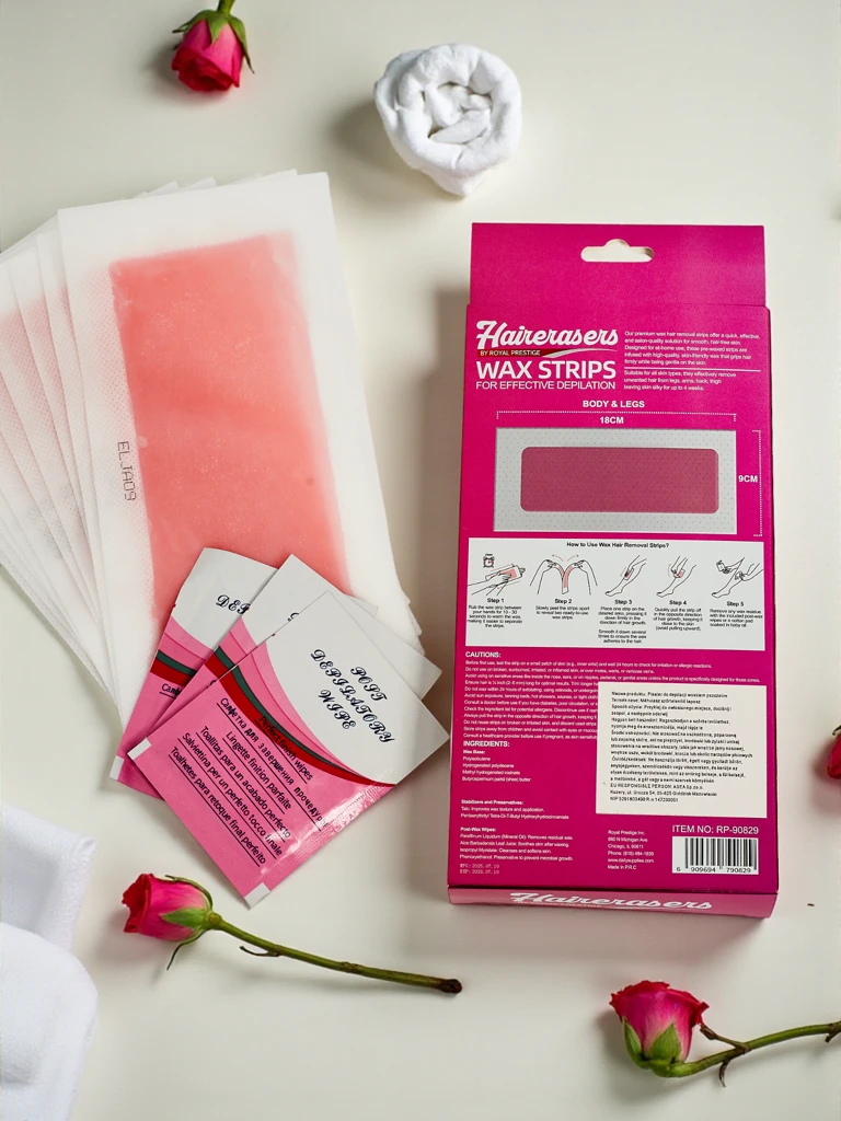 - Vaško depiliaciniai pleistrai kūnui – tai greitas ir efektyvus būdas pasiekti glotnią odą iki 4 savaičių. Lengvai naudojami, pašalina plaukelius su šaknimis, palikdami odą šilkinę, minkštą ir prižiūrėtą be būtinybės dažnai skustis.