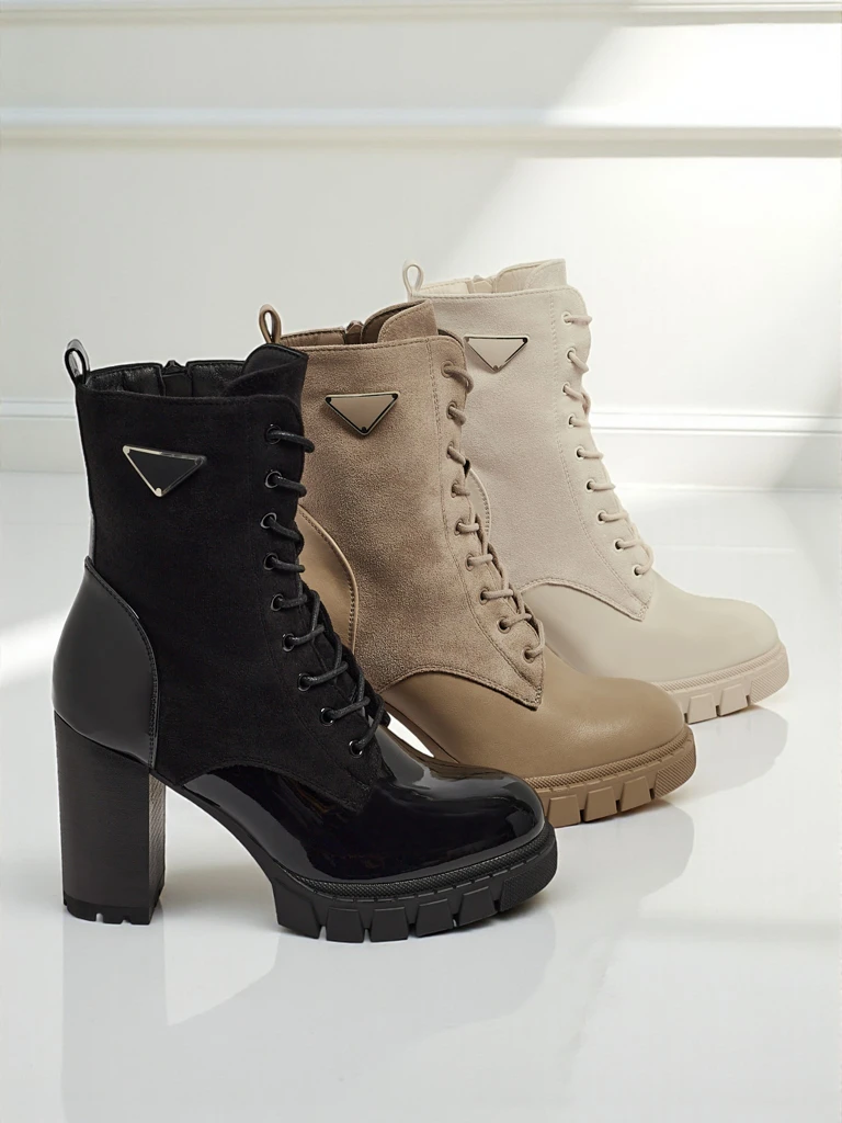 - Patogūs aulinukai su storu kulnu, pagaminti iš eko zomšos ir ekologiškos odos. Modelis suvarstomas ir užsegamas užtrauktuku. Puikus pasirinkimas rudeniui!