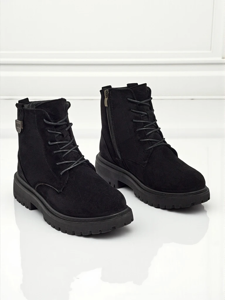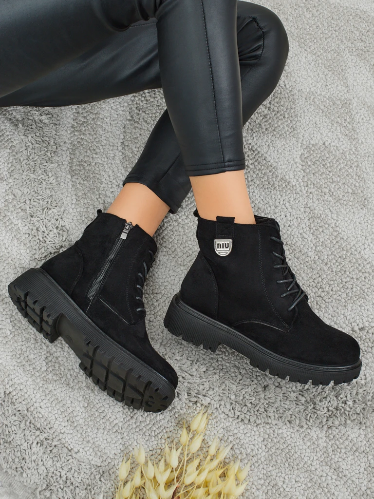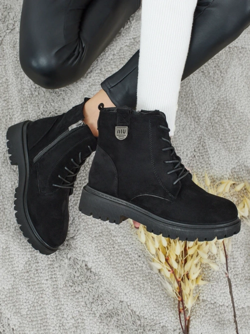 - Moteriški треkingo tipo aulinukai su raišteliais ir užtrauktuku šone. Pagaminti iš zomšinės ekologiškos odos. Batų vidus apšiltintas kailiuku. Puikiai tinka žiemai!