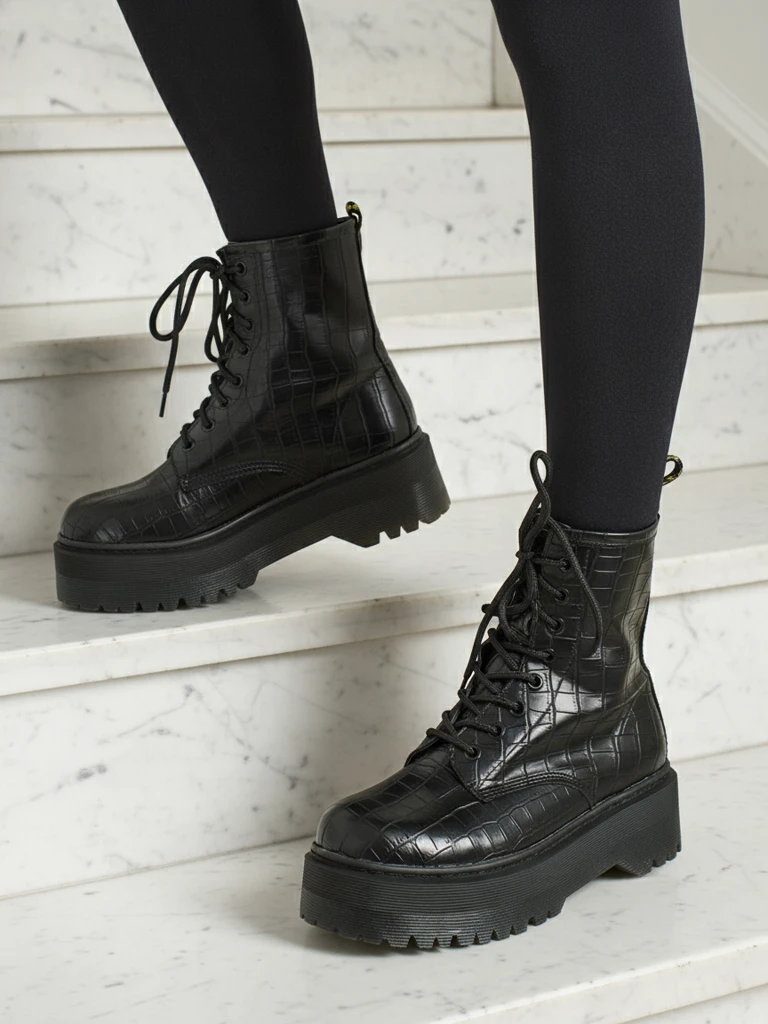 • Aukšti moteriški aulinukai-batai iš eko odos, suvarstomi. Modelis su platforma, viduje - audinys. Puikus pasirinkimas vėsesniam orui!
