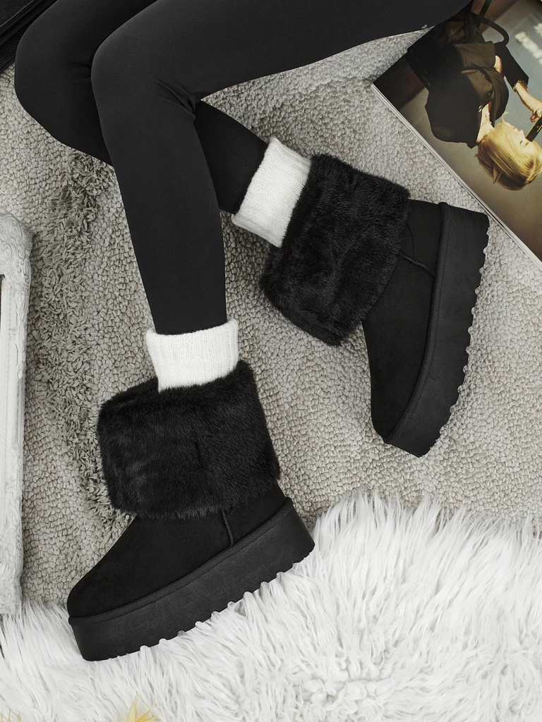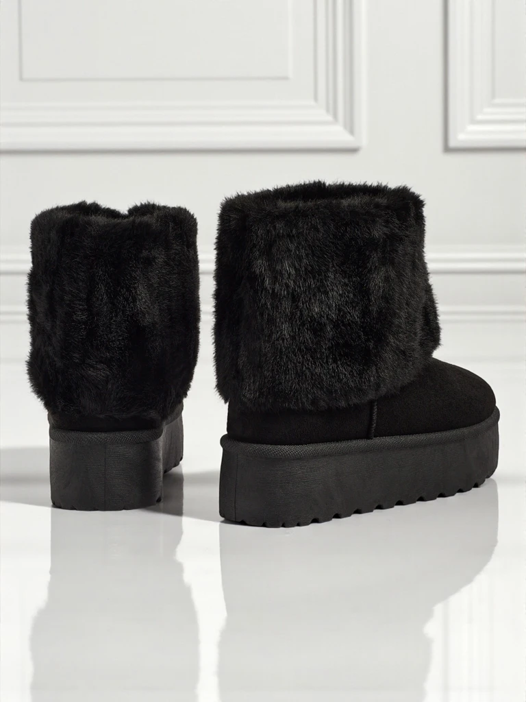 • Puikūs moteriški žieminiai sniego batai su storesniu platforminiu padu. Viršutinė dalis pagaminta iš ekologiškos zomšos odos, vidus apšiltintas kailiuku. Ideali bazė žiemai!