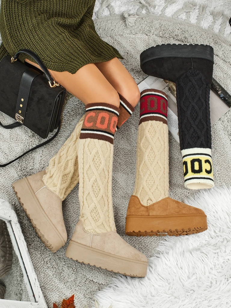 - Puikūs žieminiai moteriški sniego batai su storesniu platforminiu padu. Viršutinė dalis pagaminta iš ekologiškos zomšos odos, vidus apšiltintas kailiu. Jie taip pat turi aukštą aulinę kojinę iš audinio. Ideali bazė žiemai!
