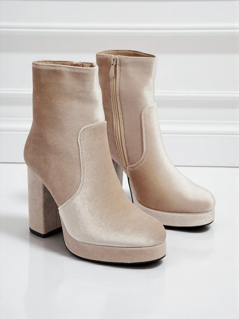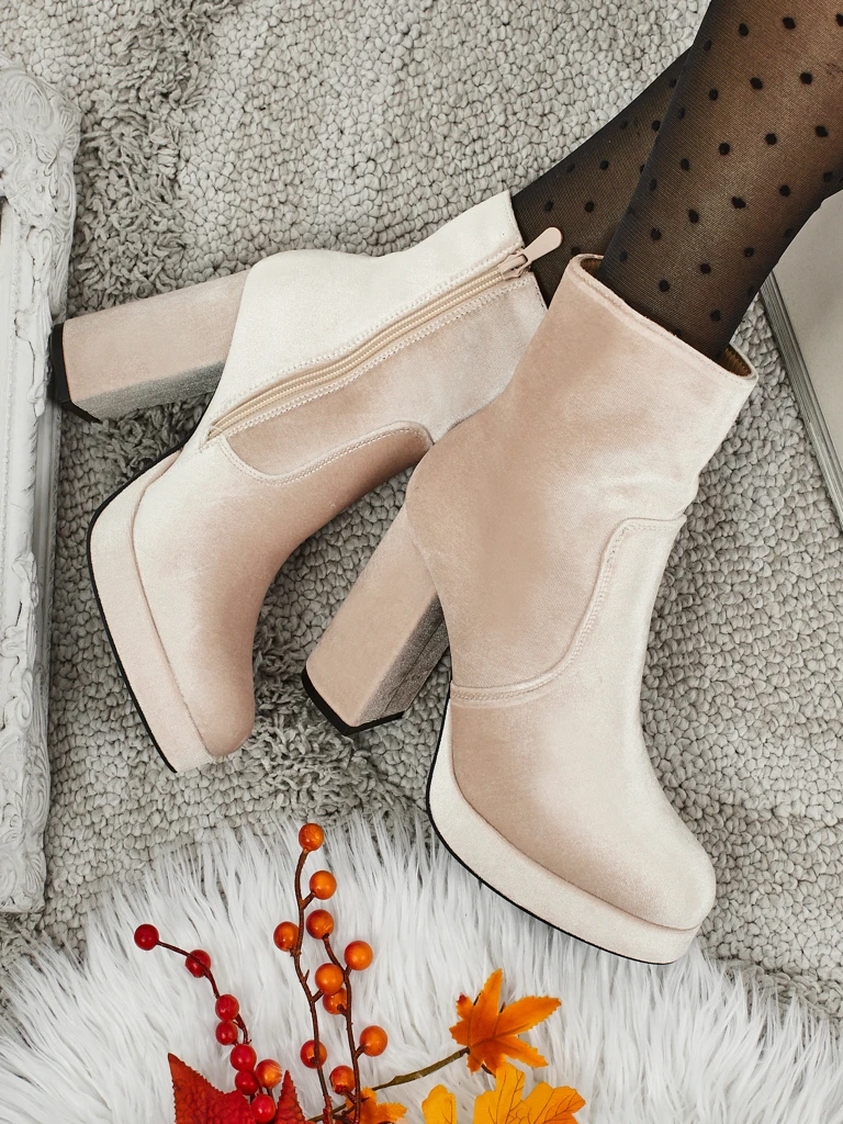 - Patogūs aulinukai su storu kulnu, pagaminti iš veliūrą primenančio audinio. Modelis užsegamas užtrauktuku. Turi švelnų pašiltinimą kailio pavidalu. Puikus pasirinkimas rudeniui!