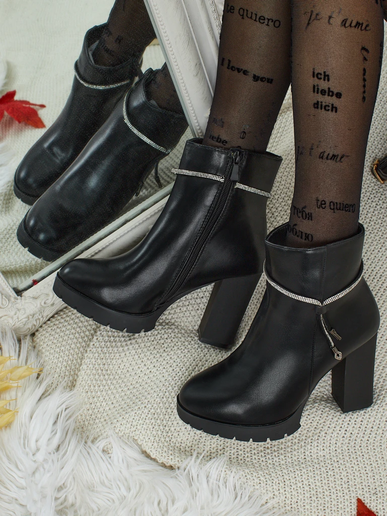 - Patogūs aulinukai su storu kulnu, pagaminti iš eko odos. Modelis užsegamas užtrauktuku. Modelis švelniai apšiltintas kailiuku, turi dekoratyvinį užtrauktuką su cirkoniais. Puikus pasirinkimas rudeniui!