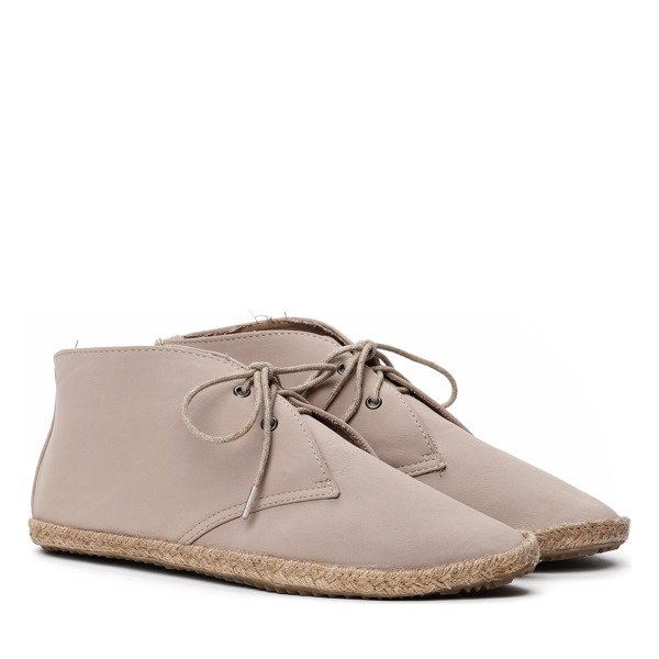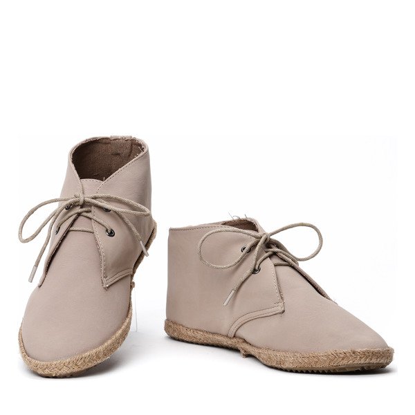 - Botki na płaskiej podeszwie wykonane z ekologicznej skóry. Wkładka wykonana z tkaniny. Cholewka sznurowana. Buty bardzo lekkie i wygodne.