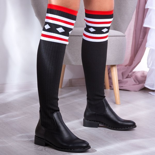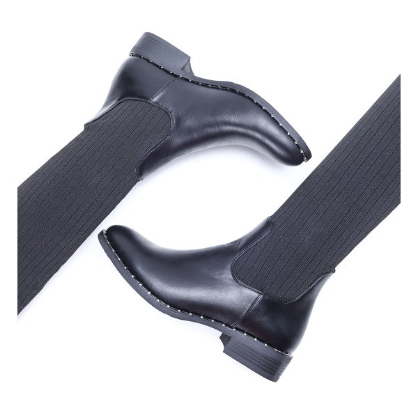 Czarne kozaki a'la skarpetka na płaskim obcasie Salvia- Obuwie