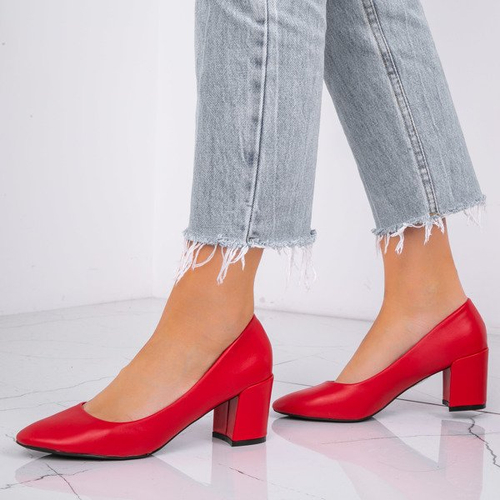 Czerwone czółenka na słupku z matowym wykończeniem Madisynn - Obuwie