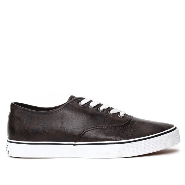 • Спортивная обувь на шнуровке из мягкой экологической кожи коричневого цвета. Стелька на тканевой подкладке. Чрезвычайно легкий и очень удобный благодаря гибкой резиновой подошве.