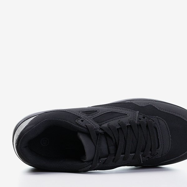• Мужские черные спортивные туфли из комбинации матовой экокожи и тканевого материала. Стелька покрыта тканью. Эта обувь идеально подходит для прогулок, езды на велосипеде или работы.
