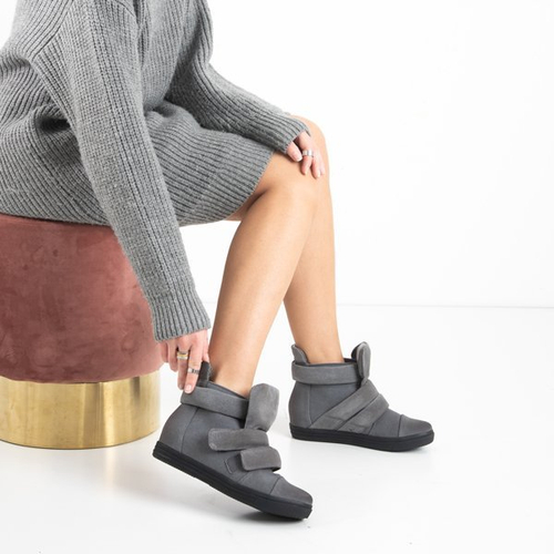 - Женские кроссовки на скрытой танкетке. Изготовленные из экологического нубука. Носок украшен восковой обработкой. Модель на липучках. Внутри обувь утеплитель в виде меха, а стелька - из фетра.