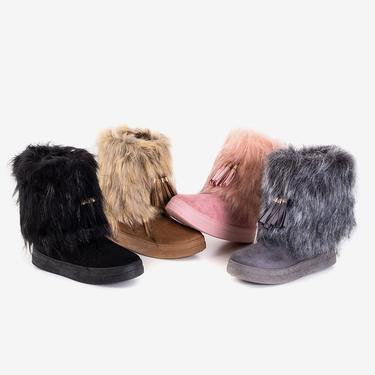 • Стильные женские зимние сапоги на платформе из экозамши. Верх с декоративным мехом и кисточками, посередине утеплитель в виде деликатного меха. Сапоги застегиваются на молнию. Они станут отличным украшением к повседневным образам.