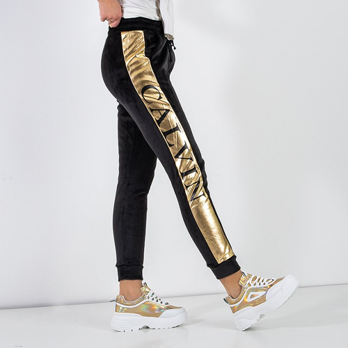 Женские черные утепленные спортивные брюки с золотыми полосками - Odież