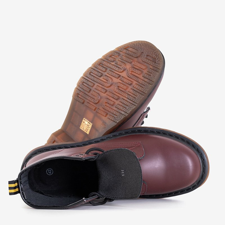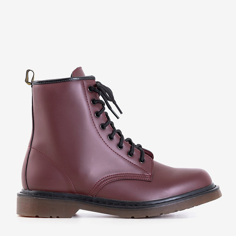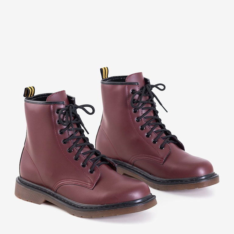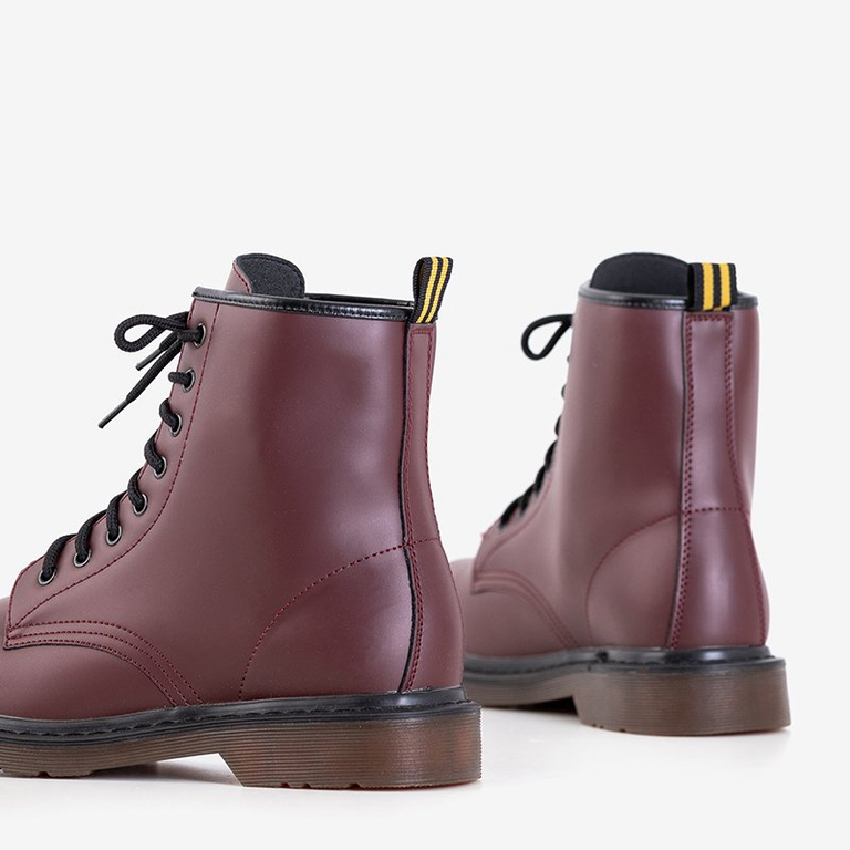 - Комфортные мужские походные ботинки бордового цвета из матовой экологической кожи. У них нет утеплителя - тканевой вставки. Туфли зашнурованы. Идеально подходит для повседневного использования!