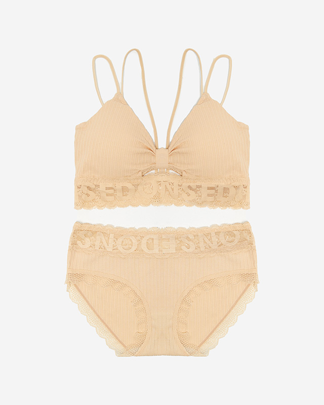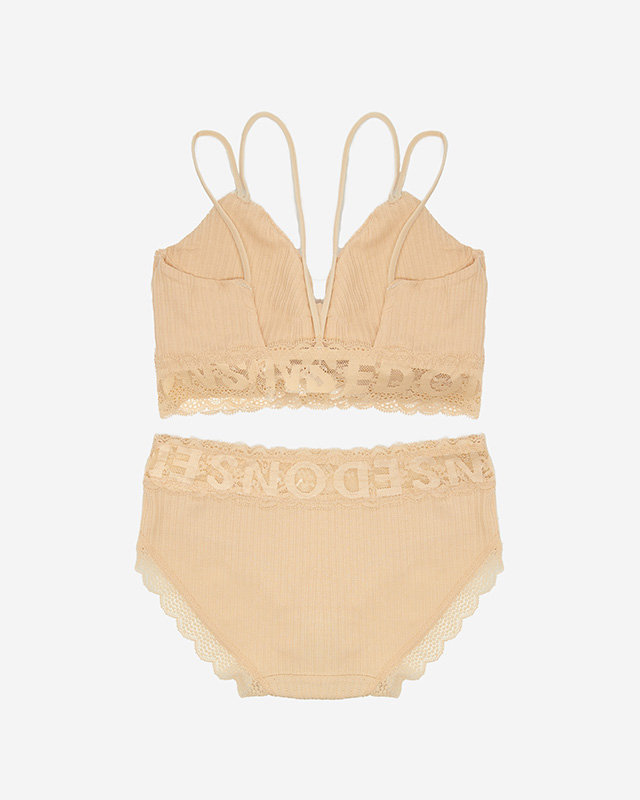 Бежевый женский комплект белья с кружевом - Нижнее белье