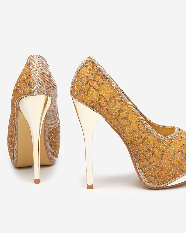 Золотые женские туфли с блестками и стразами Vida