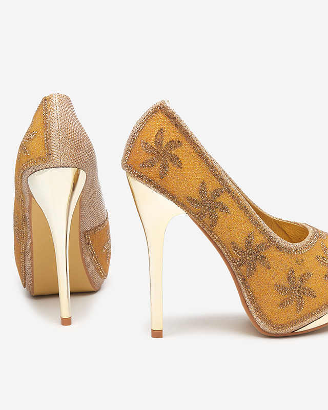 • Волшебные женские туфли на шпильке с открытым носком. Модель выполнена из сочетания тканевого материала и эко-кожи, покрытой блестками. Стелька изготовлена из экологической кожи. Обувь, которая притягивает взгляд!