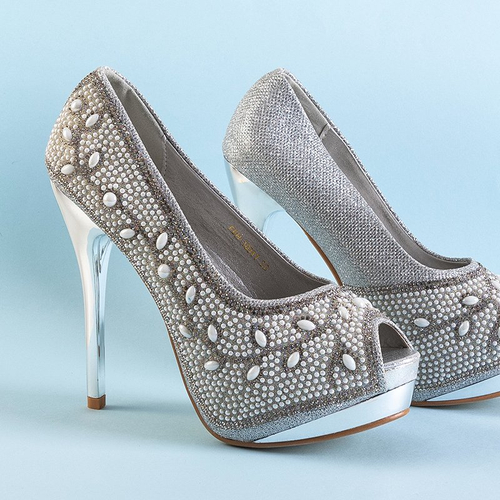 Серебряные блестящие туфли со стразами Lindi