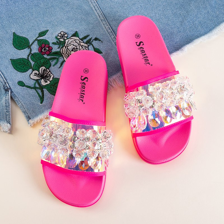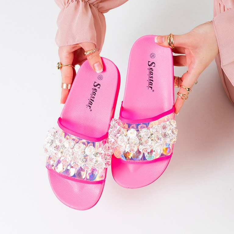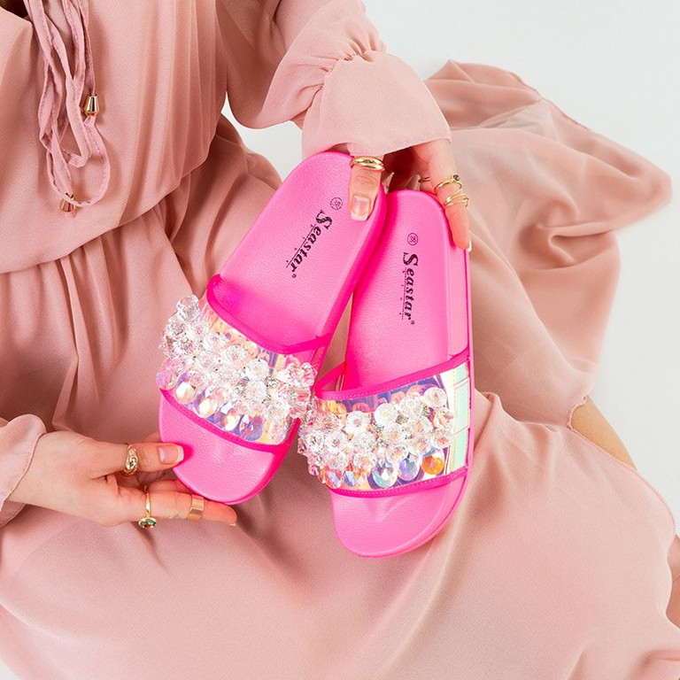 - Cтильние женские летние шлепанцы из резинового материала. Модель с голографическим ремешком, украшенным стразами. Удобная обувь на каждый день.