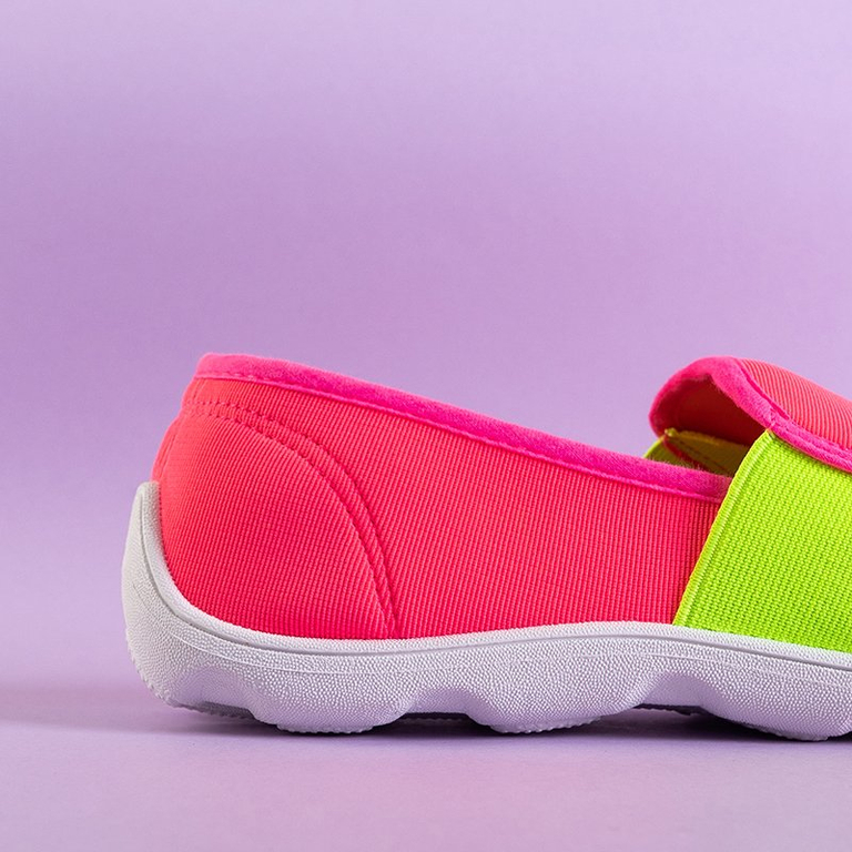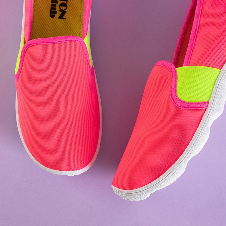 Розовые неоновые женские слипоны с желтыми вставками Molara