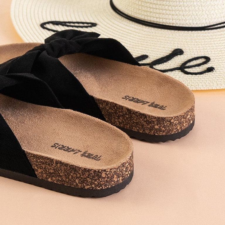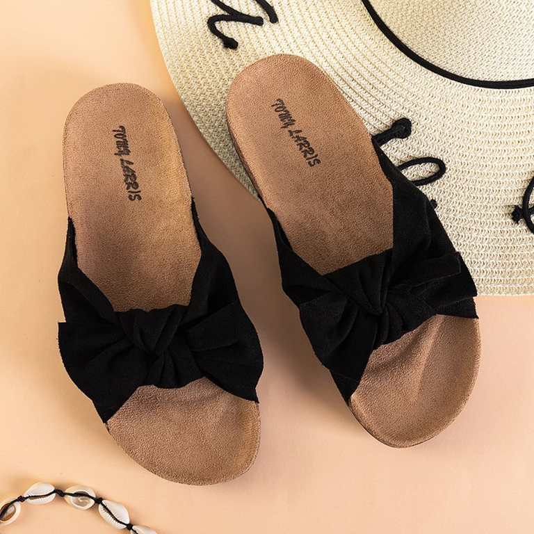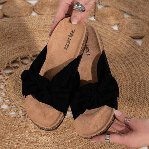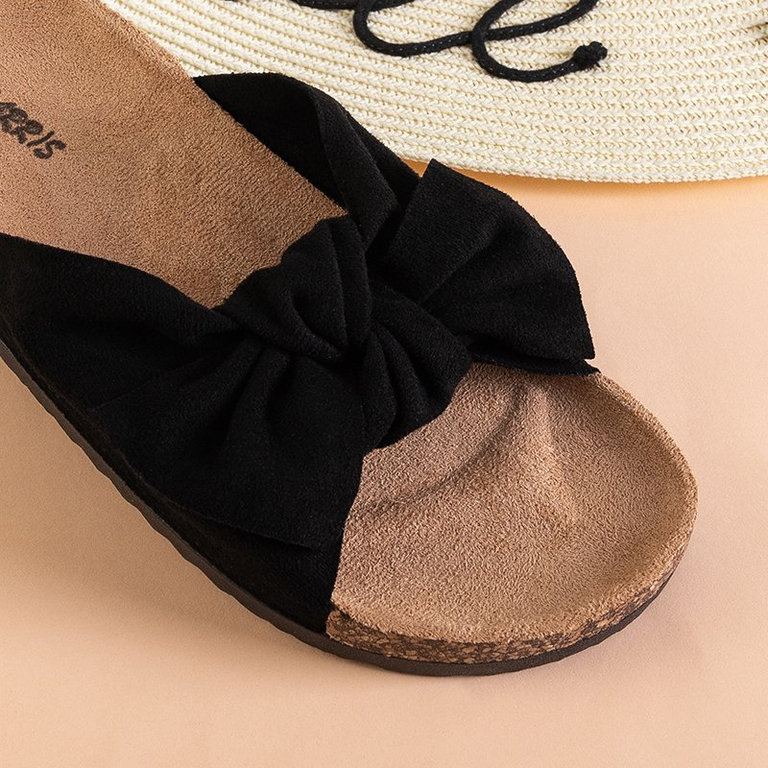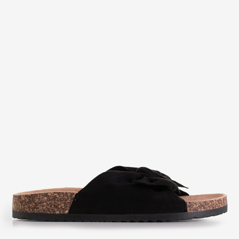 - Удобные женские шлепанцы на плоской подошве, украшенные бантом. Верх и стелька изготовлены из мягкой экологической замши. Подошва выполнена из комбинации резинового материала и пробки. Отличный выбор для летних образов.