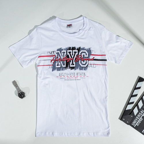 - Мужская футболка из хлопка. Модель украшена цветным надписью спереди. Прекрасно подойдет для жарких летних дней.