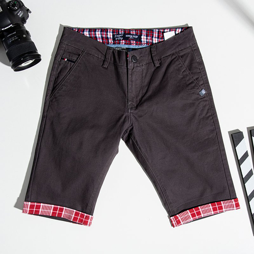 - Мужские короткие шорты длиной до колен. Изготовлены из мягкой ткани. Модель с манжетами в клеточку и имеет 4 кармана.