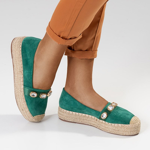Зеленые женские эспадрильи на платформе со стразами Fenenna